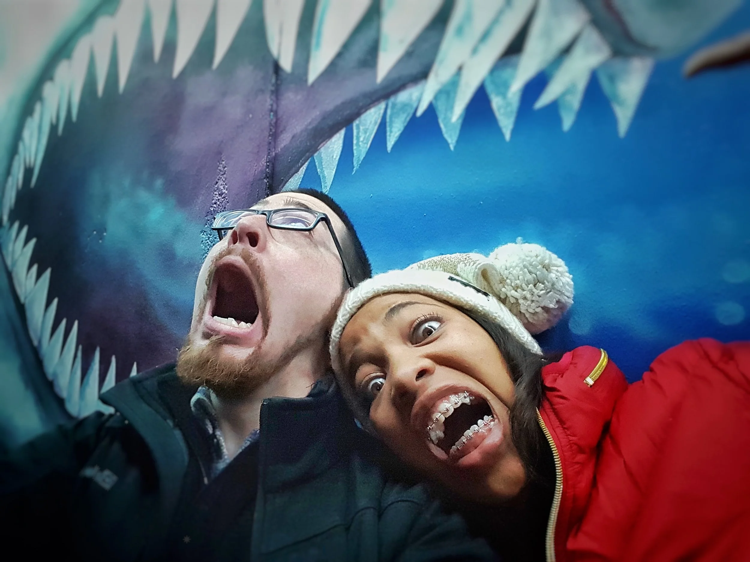 I don't really have any cool pictures for my post like Bev has for hers...so here is a picture of us being eaten by a shark.